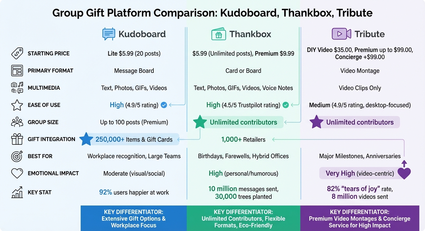 Kudoboard vs Thankbox vs Tribute: Which Group Gift Actually Touches People?
