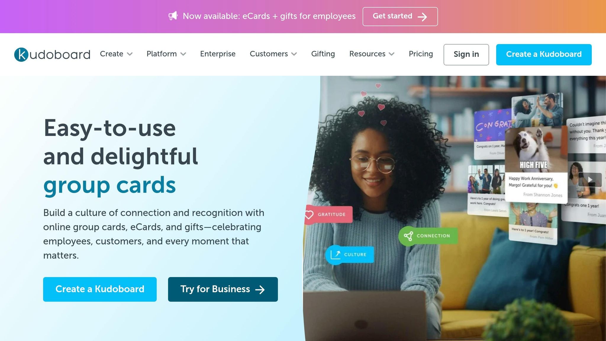 "Kudoboard makes it easy for a group of people... to come together and contribute personalized messages, photos, GIFs, and videos in one place. It's like a modern-day group card - but way more expressive."